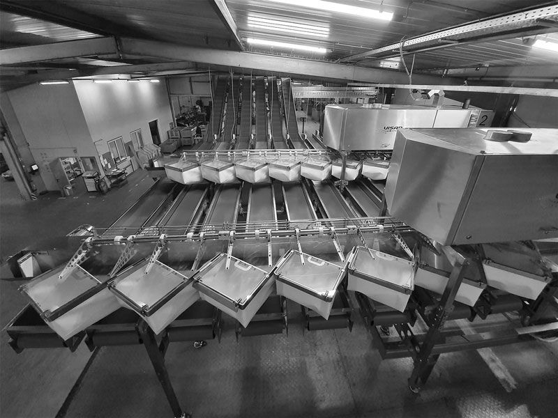 There are 4 to 16 parameterizable outputs available. The products of each exit are passed onto individual conveyor belts. The sorting criteria can easily be adapted to the specific needs of each customer.