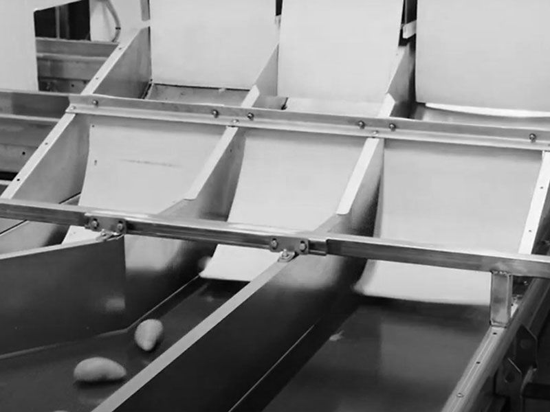 A robust belt system aligns potatoes of all sizes, smoothly and almost without any duplicates.